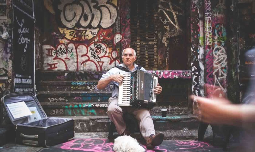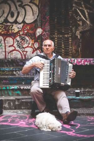 Street Music: Old Man Play Accordion In The Brooklyn, New York City